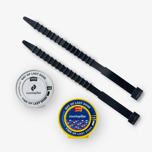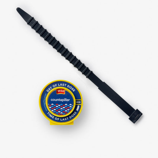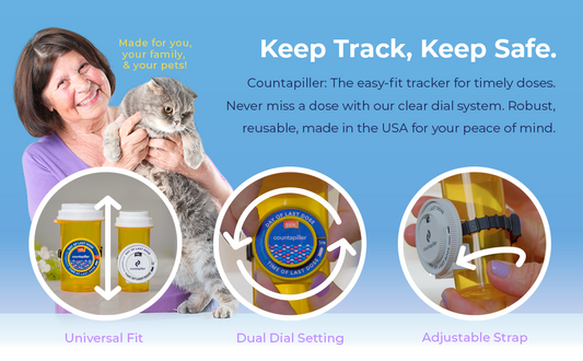 This single bottle pill-minder is a clever concept that can be used with a variety of prescription bottles. Preferably ones that are bigger. The overall diameter of the dial could be reduced a little bit in order to allow for easier removal of the cap. That's my only criticism. The rubber strap, while somewhat crude, does the job and should work with the majority of standard medication bottles. The use of the dials is simple and they stay secure enough that won't rotate alone even if bumped around or squeezed in a purse or bag full of stuff. No batteries required. Just your fingers when you reach for the bottle and take your medicine.